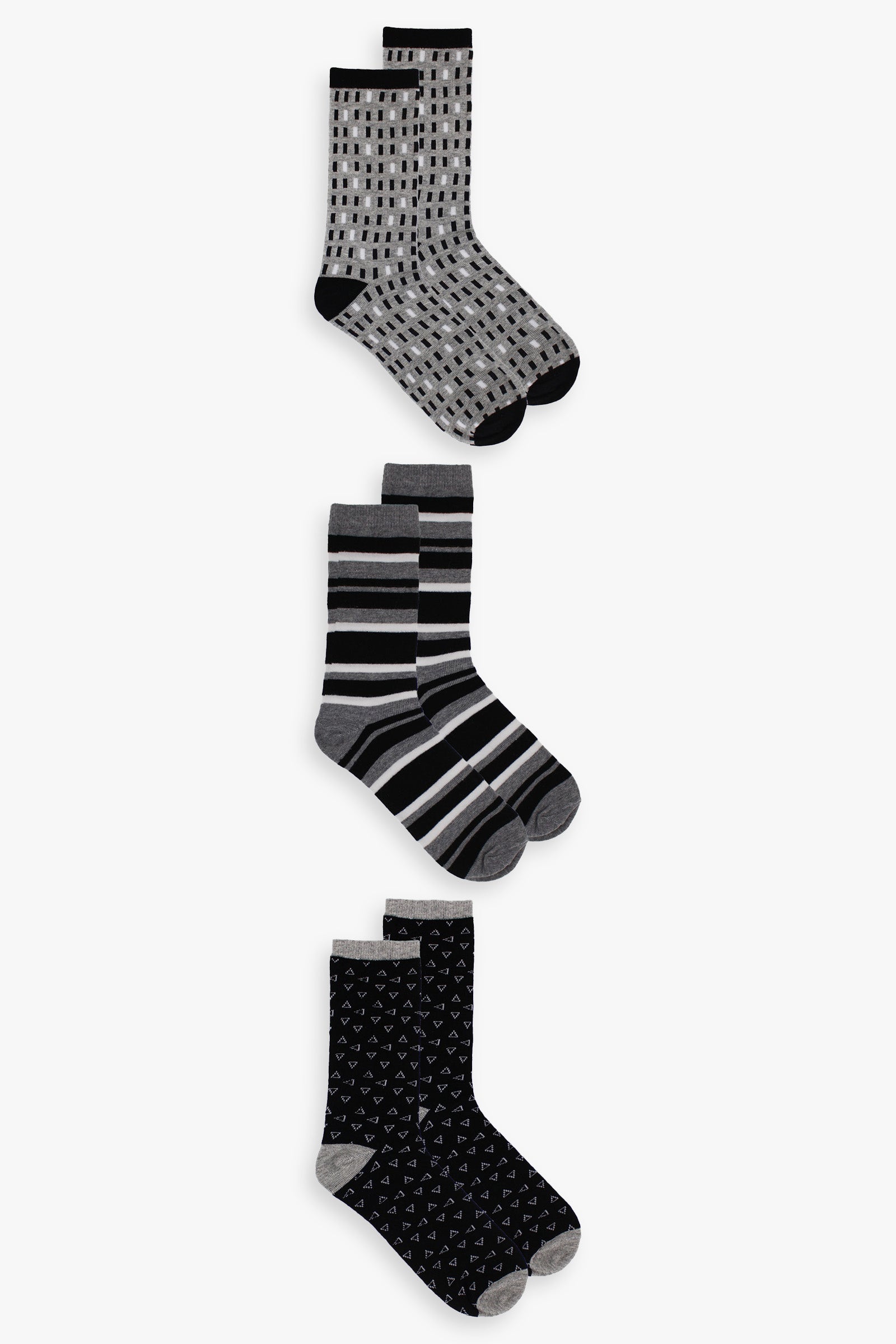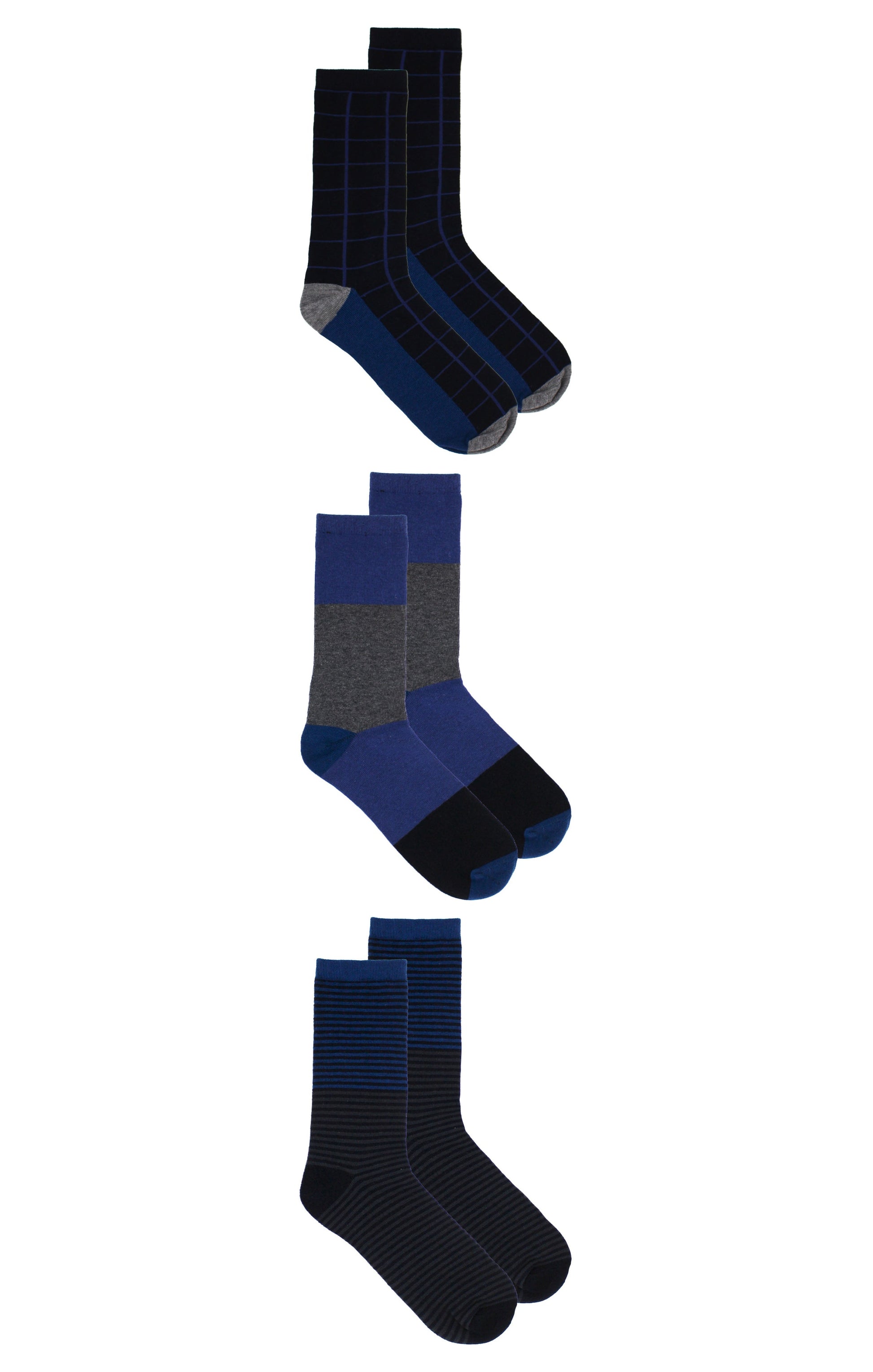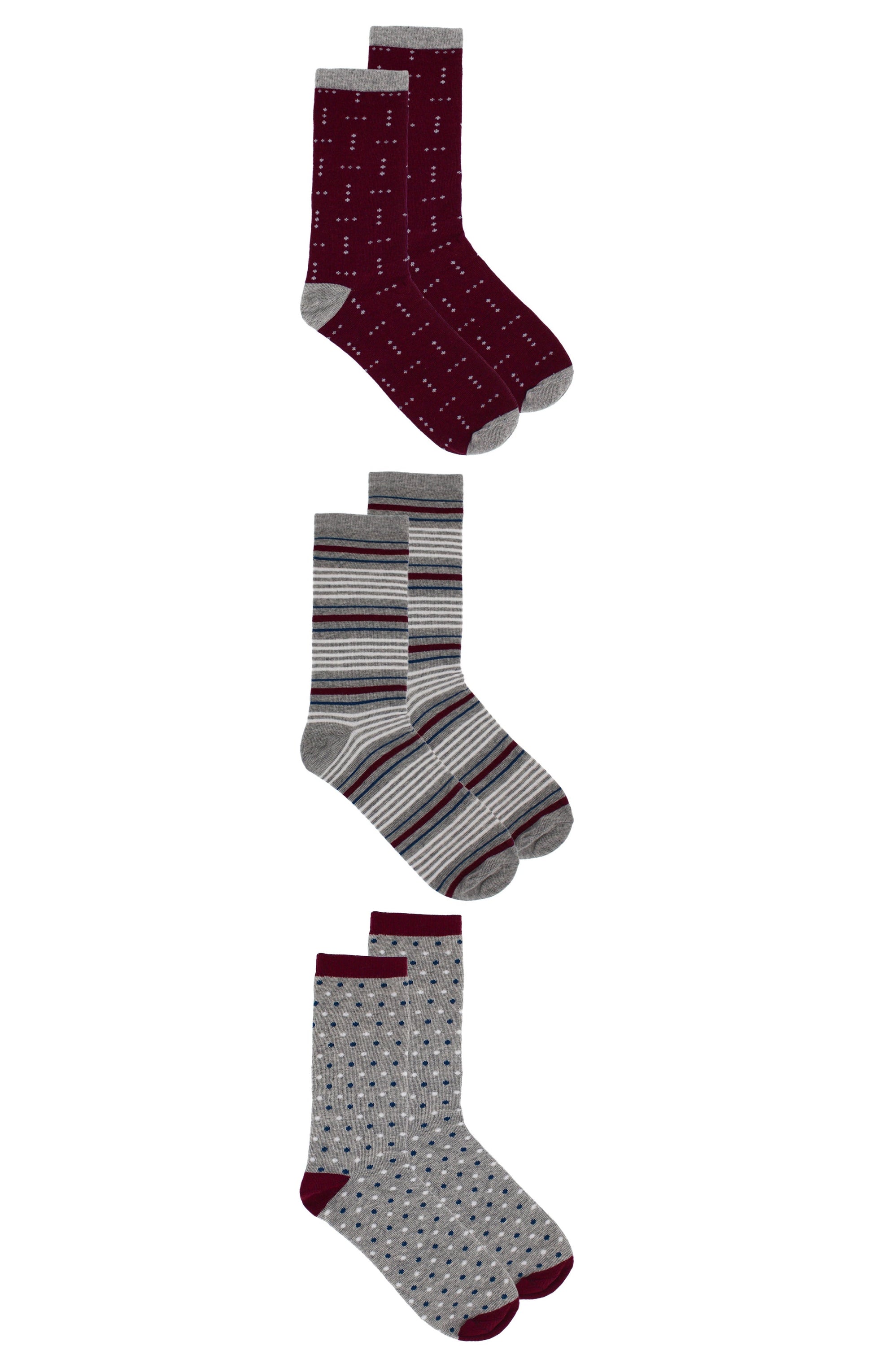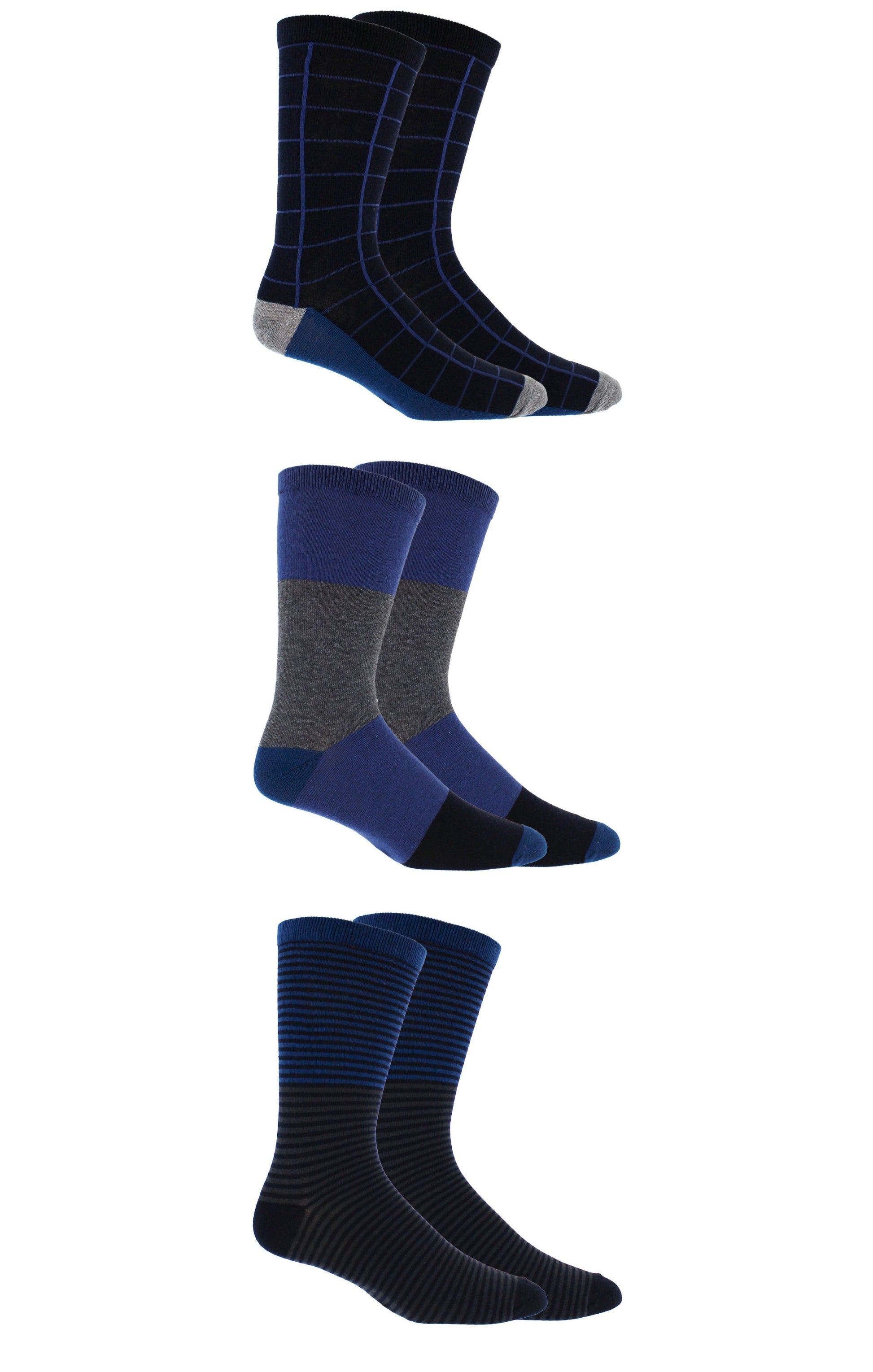 Unleash a stylish statement with the Densley&Co Men's 3-Pack of Graphic Pattern Cotton Dress Crew Socks, crafted with a luxurious blend of comfort and quality. Elevate your ensemble with a touch of novelty and fun delivered through a variety of assorted patterns and styles.