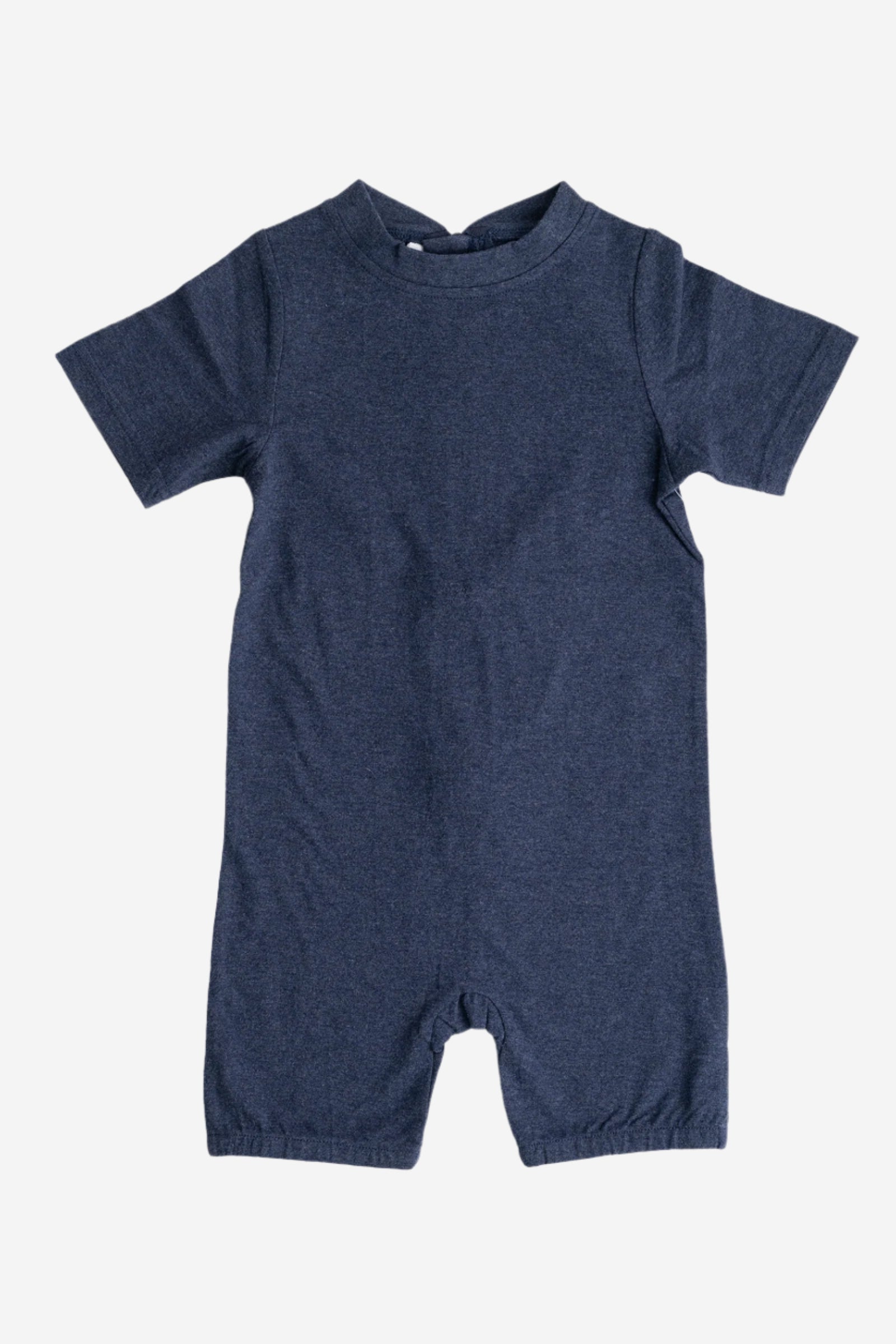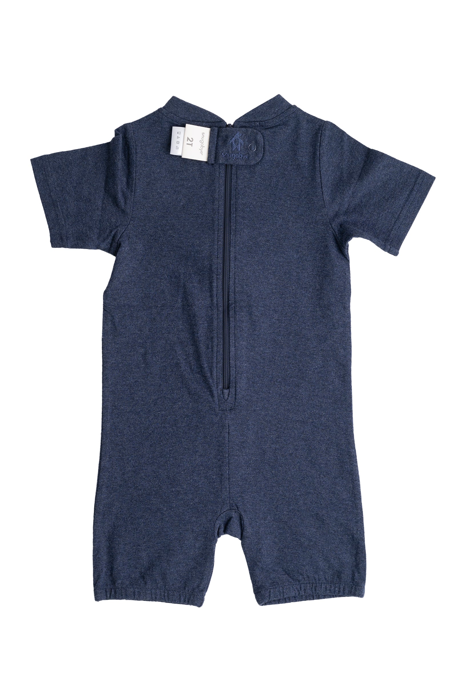 Kids Navy Lightweight Organic Cotton Adaptive, Anti-Strip, Back-Zip Romper