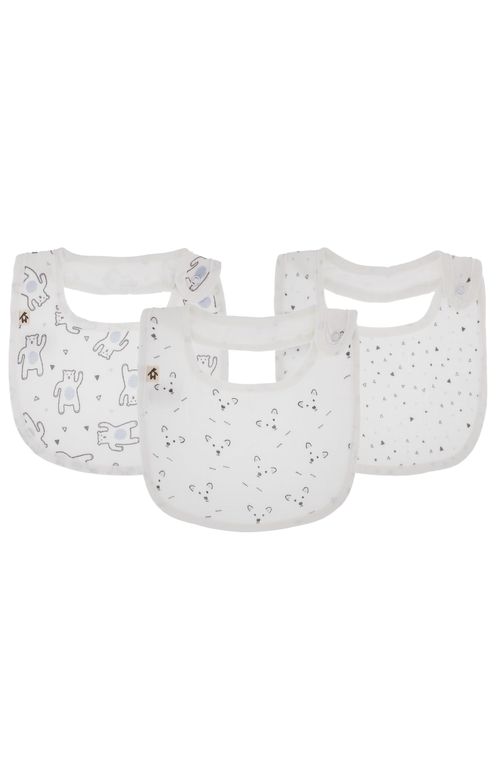Snugabye Dream Baby Cotton Bib Bundle, 3-Pack, Animal Patterns, Assorted Colours and Designs (Cotton Muslin, Blue)