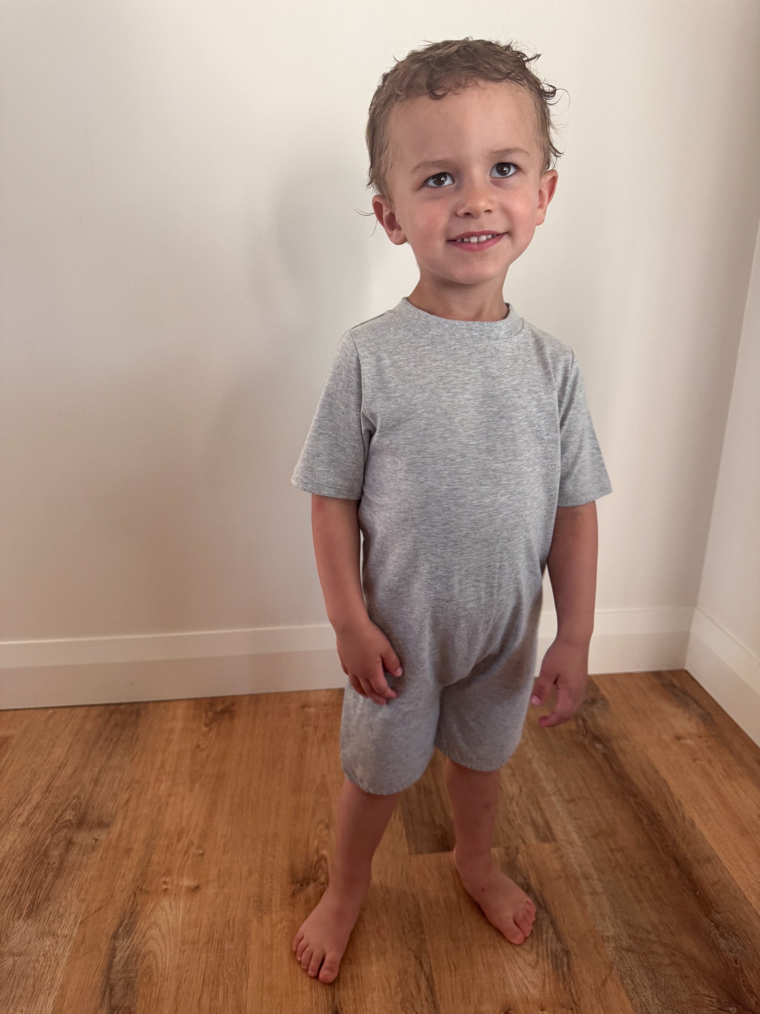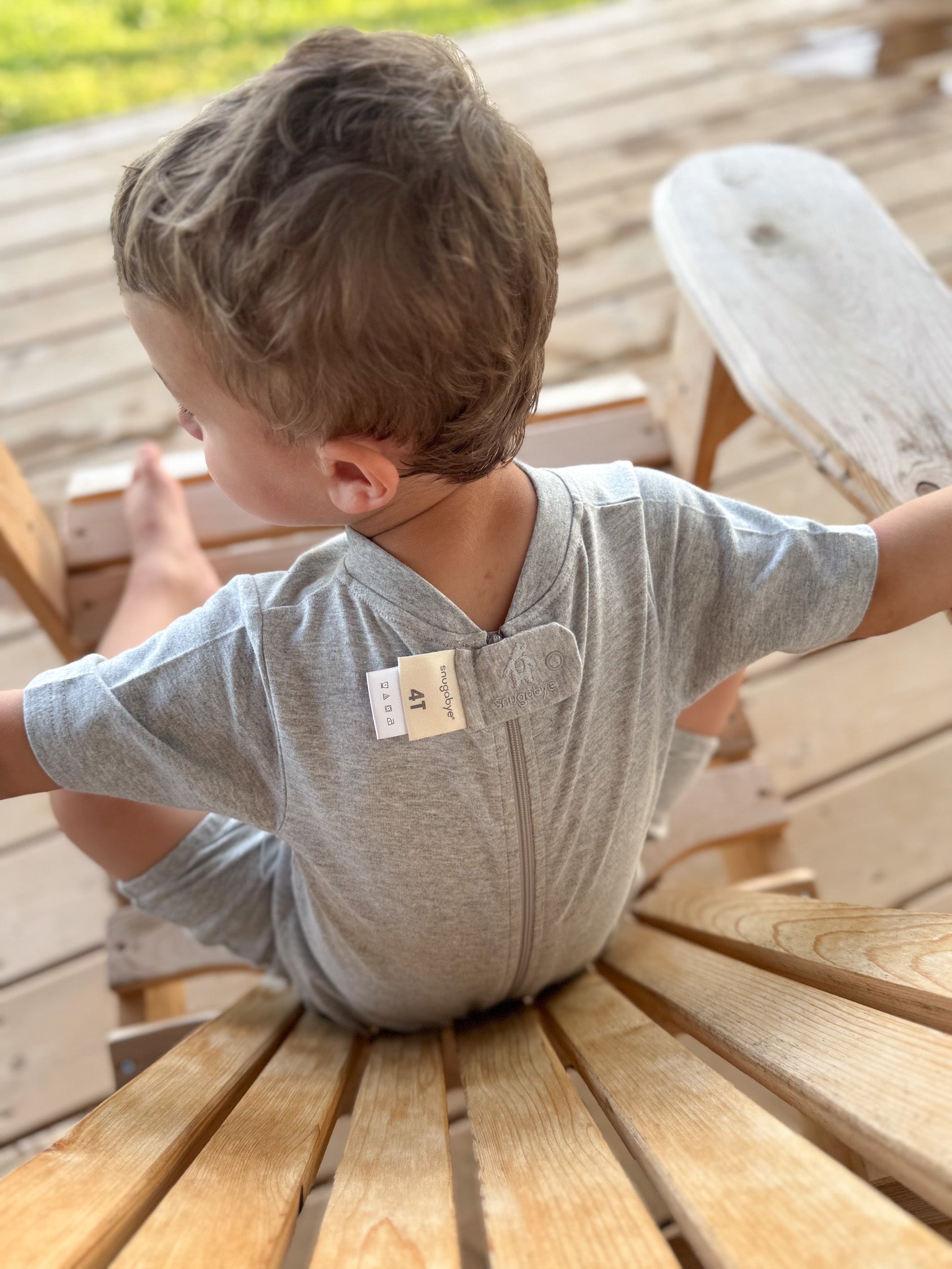 Kids Charcoal Grey Lightweight Organic Cotton Adaptive, Anti-Strip, Back-Zip Romper