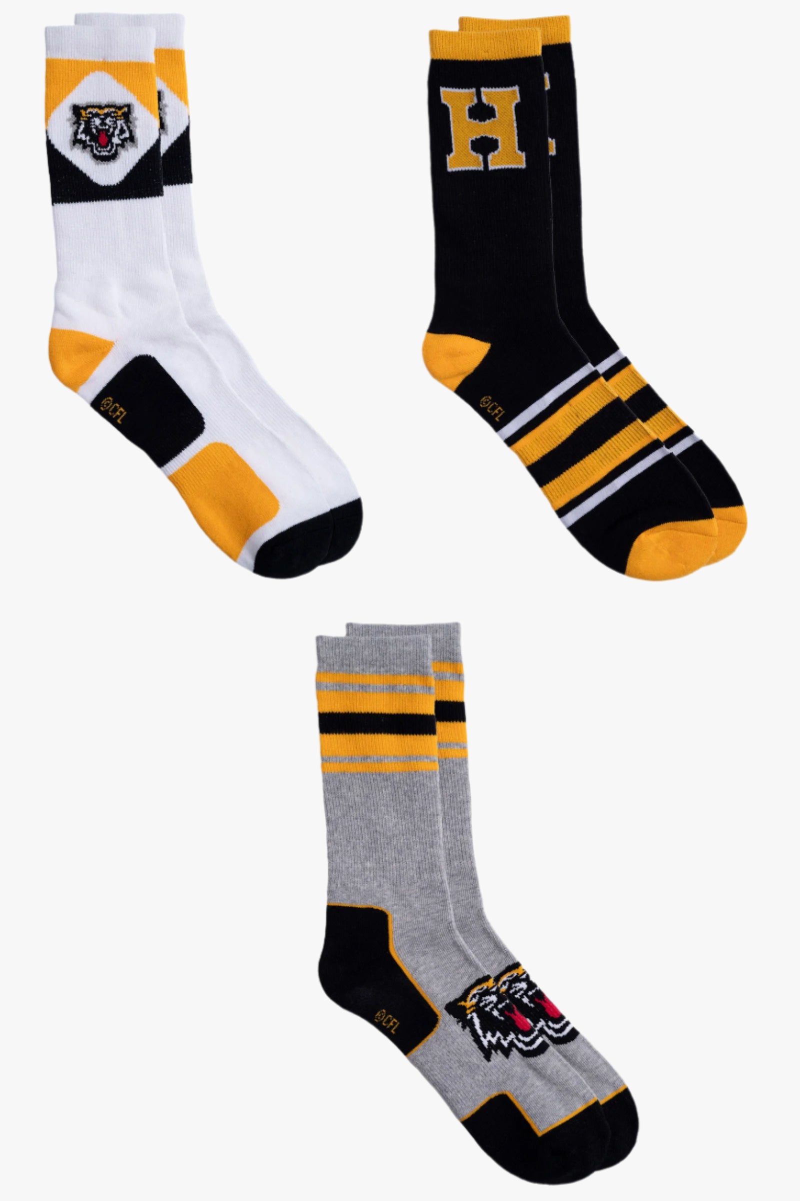 CFL Hamilton Tiger-Cats Men's 3-Pack Cotton Crew Socks With Cushioned Sole