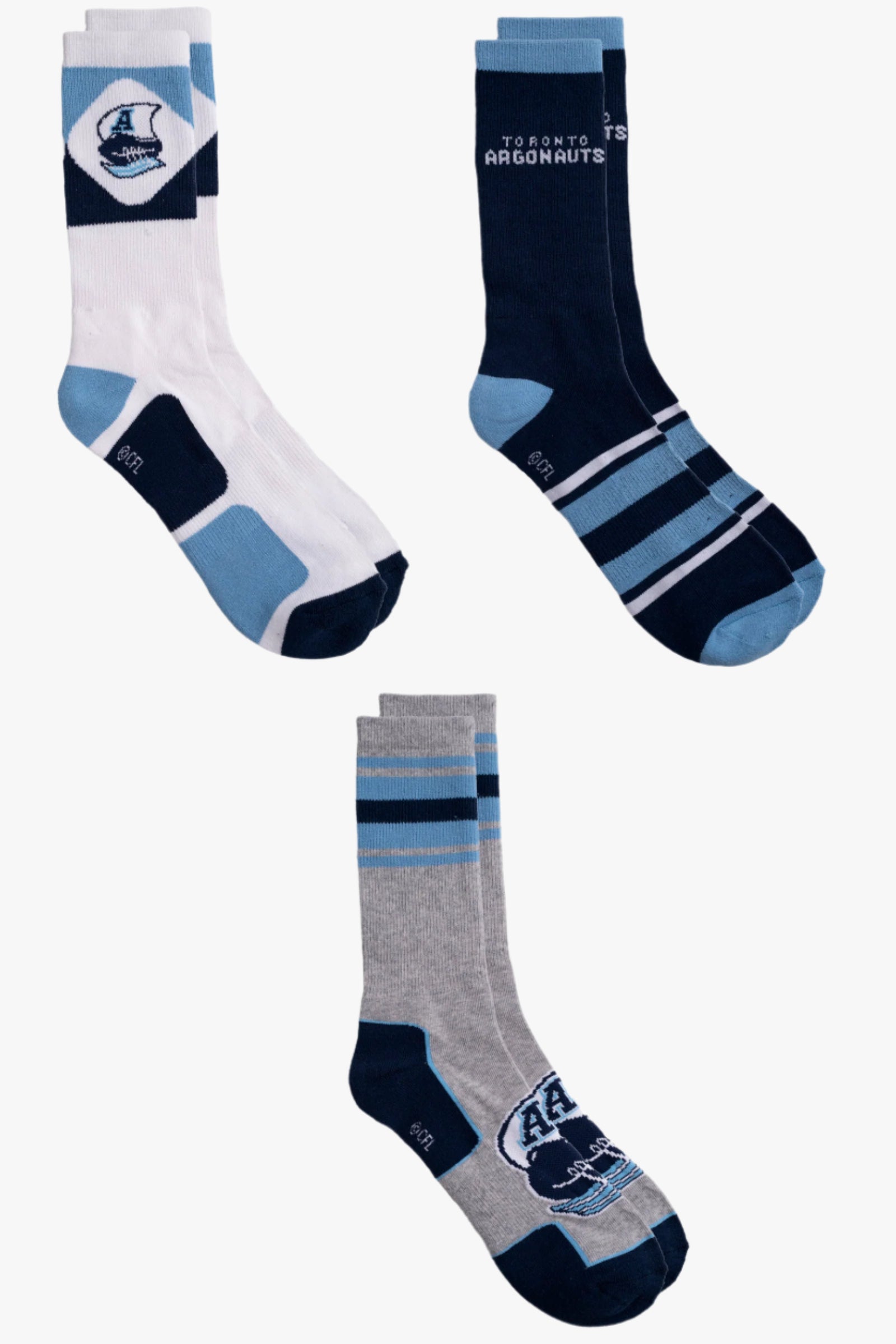 CFL Toronto Argonauts Men's 3-Pack Cotton Crew Socks With Cushioned Sole