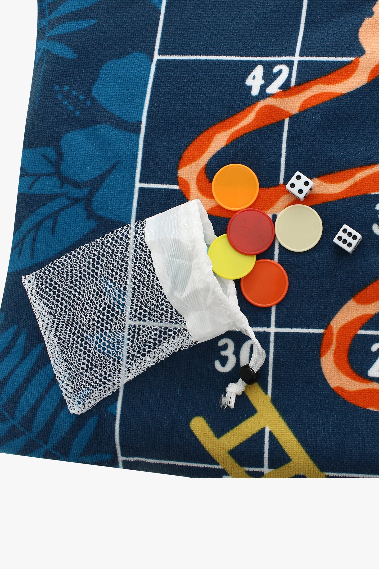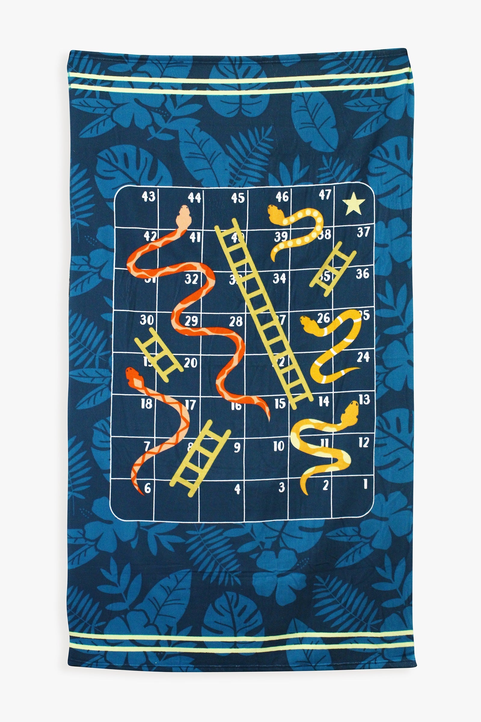 Play a game of Snakes and Ladders on our giant beach towel! This soft and huge 160cm x 90cm (that's 63 x 35 inches!) is great for drying off or lounging by the beach, and it's made from 100% polyester. Plus, it comes with dice and checkers, and you can also snag a Checkers/Backgammon, Tic Tac Toe, or other Snakes and Ladders version! Machine washable for longevity. It's time for summer fun!PRODUCT DETAILS