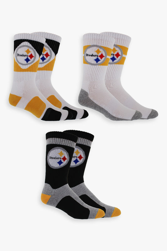 • Men's NFL Pittsburgh Steelers 3-Pack Sport Crew Fan Socks