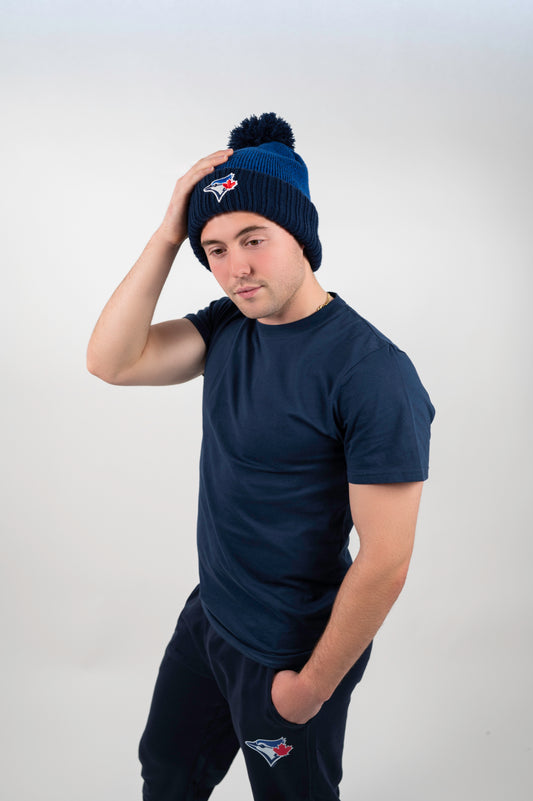 Show your Blue Jays pride with this ultra-comfy, heavy knit pom toque featuring a 3D embroidered logo on the cuff. Keep your head warm while cheering on your favourite team with stylish flair!