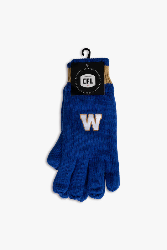 CFL Winnipeg Blue Bombers Adult Men's Cold Weather Winter Thermal Gloves With Embroidered Team Logo