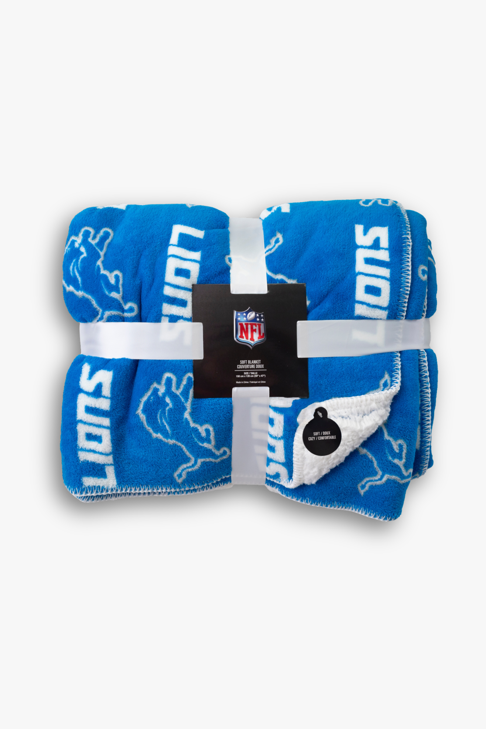 NFL Detroit Lions Faux Shearling Sherpa Lined Blanket with Soft Coral Fleece | 120cm x 150cm