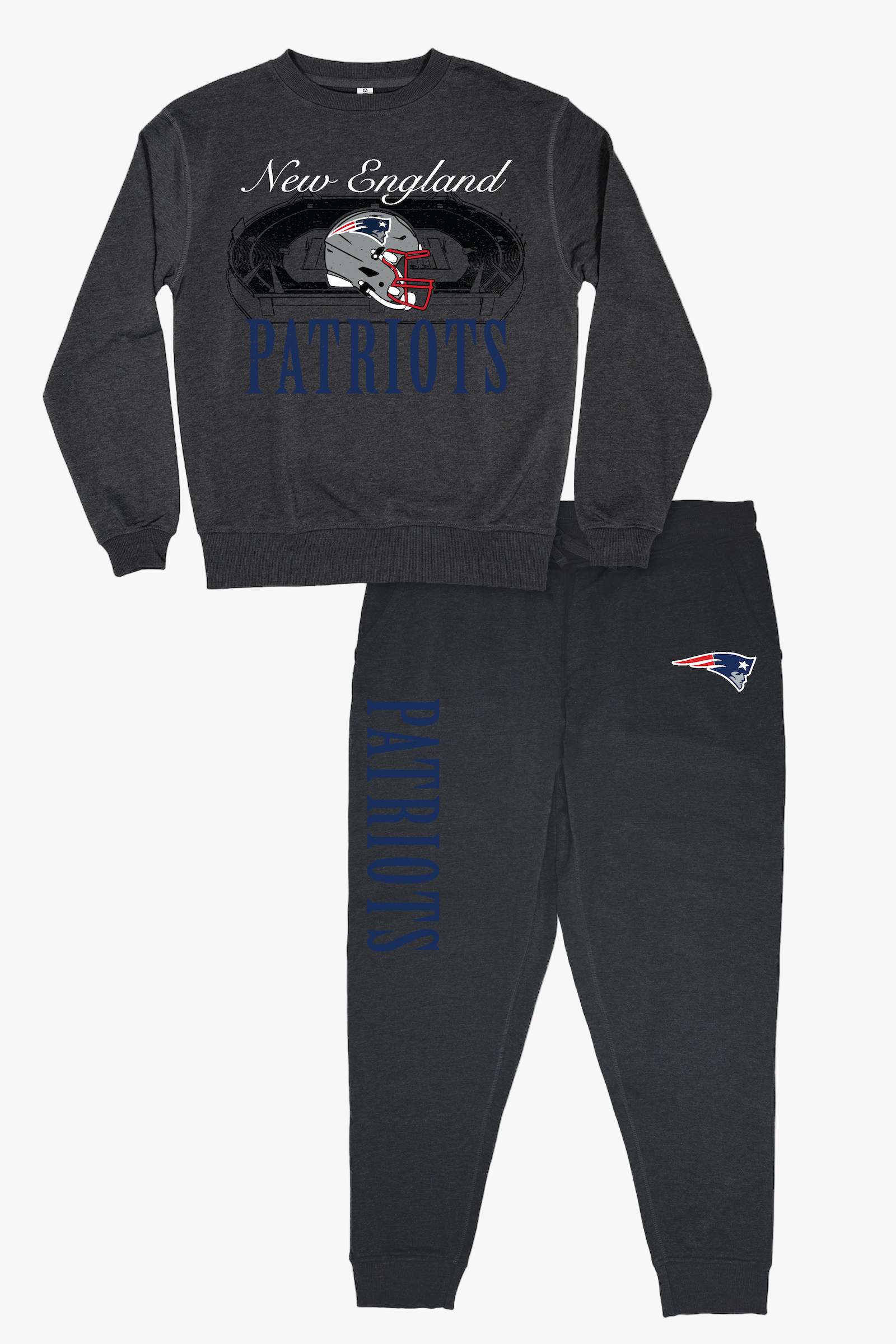 • NFL New England Patriots Unisex Adult "Distressed Stadium" Dark Grey French Terry Lounge Set