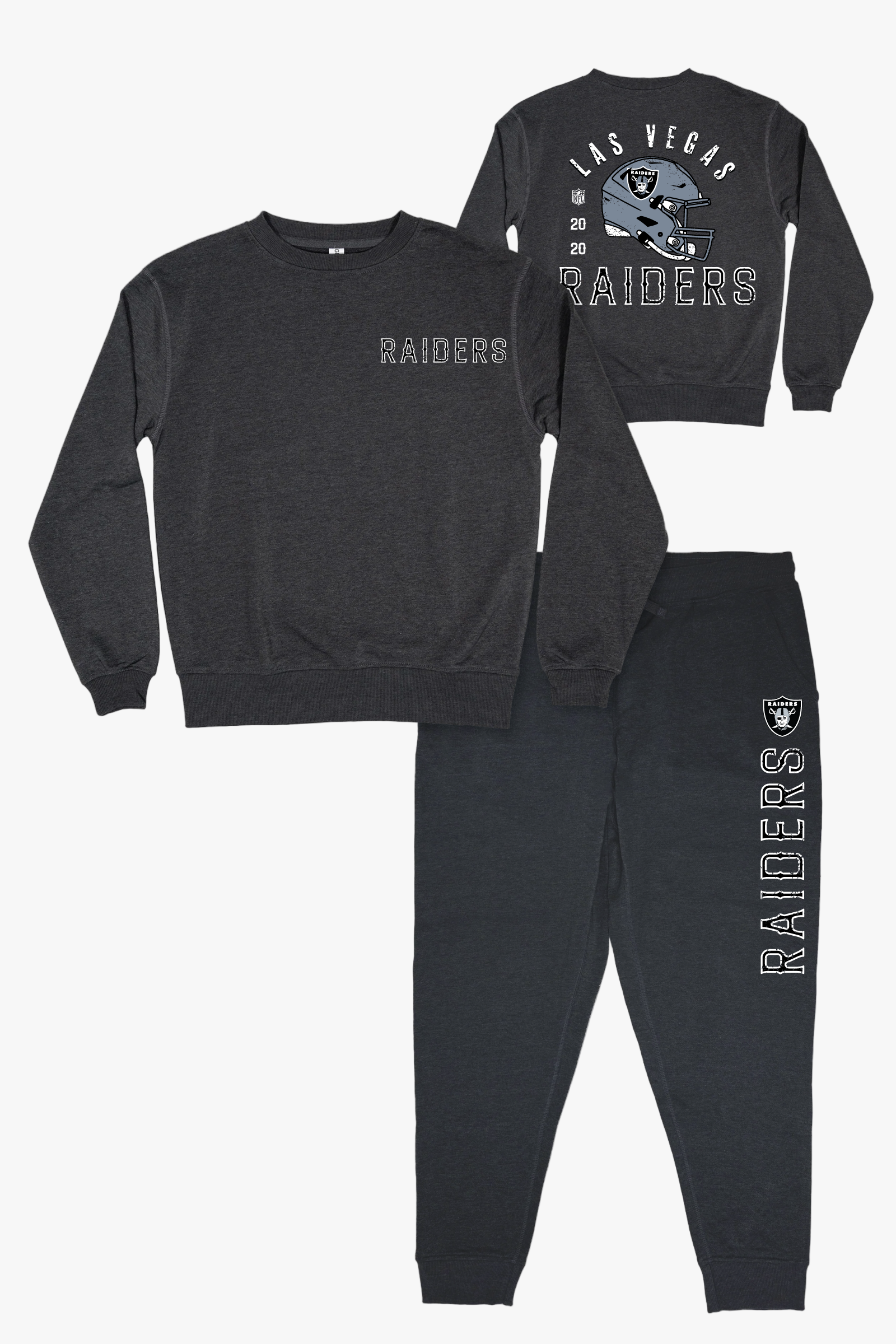 • NFL Las Vegas Raiders Unisex Adult Adult Dark Grey French Terry Lounge Set With Vintage Helmet Design