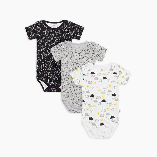 Black & White Cloud 3 Pack Short Sleeve Bodysuit Set