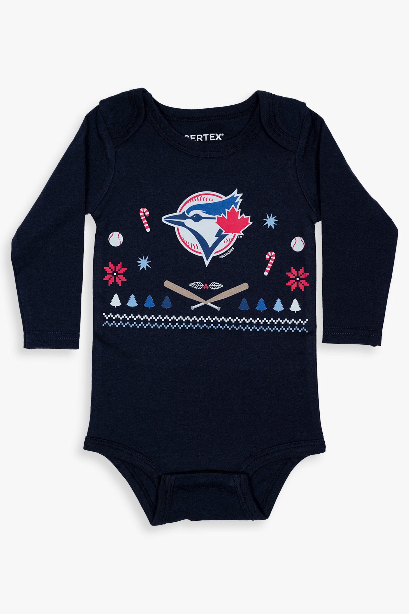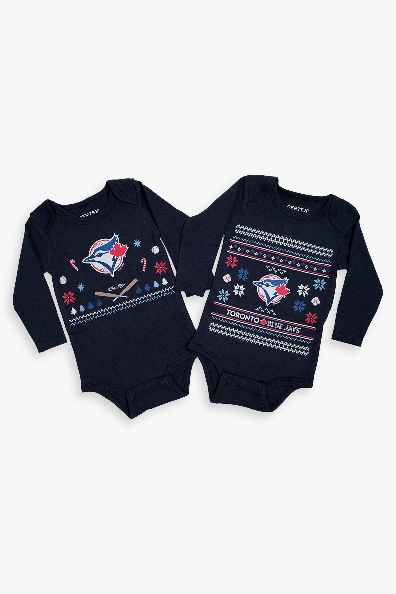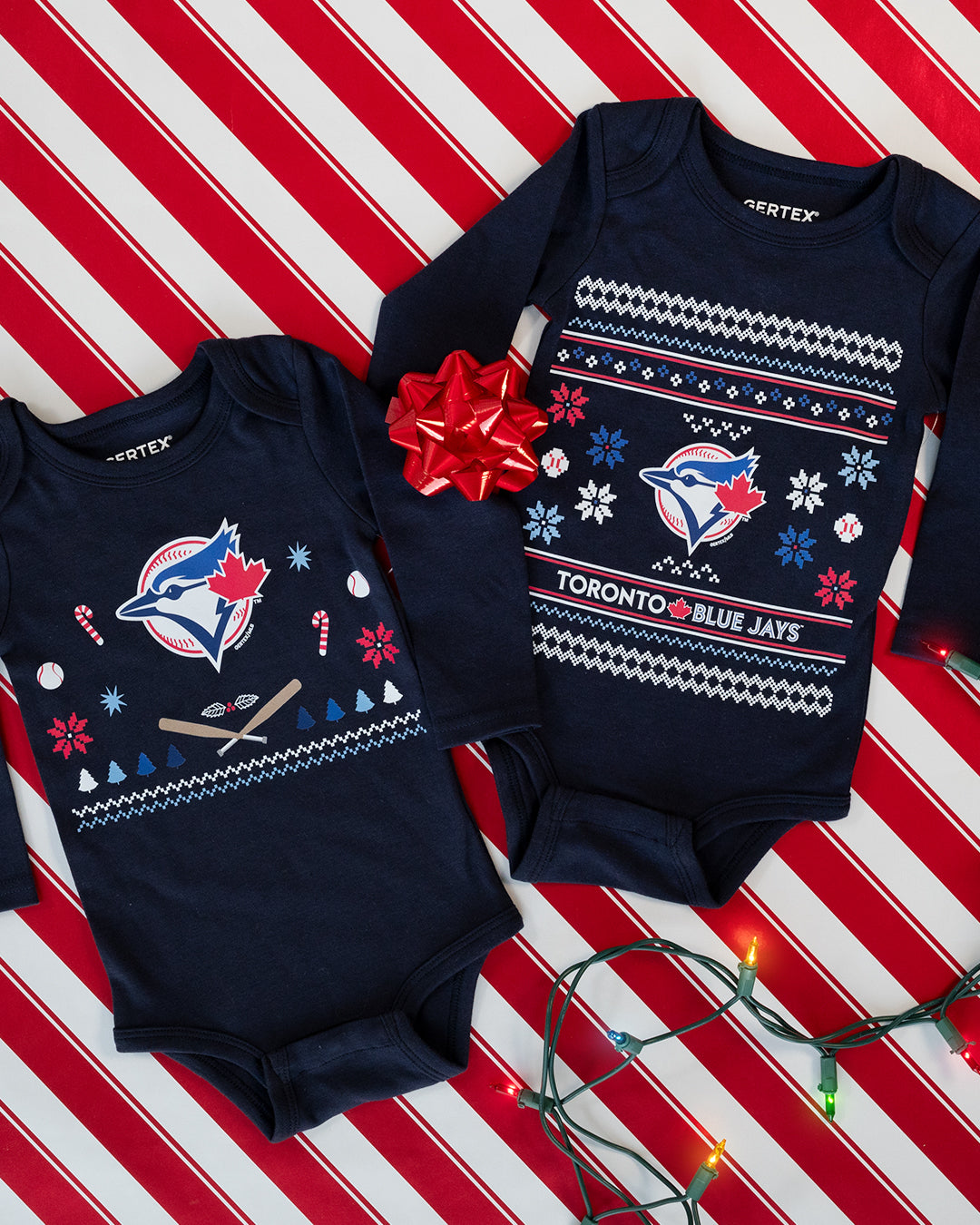 Score a holiday🎄 home run with our MLB Toronto Blue Jays Ugly Holiday 100% Organic Long Sleeve Baby Bodysuit! 🎁 Swing for the fences with two fun-tastic holiday styles that are sure to crack up your little slugger. 🎅
