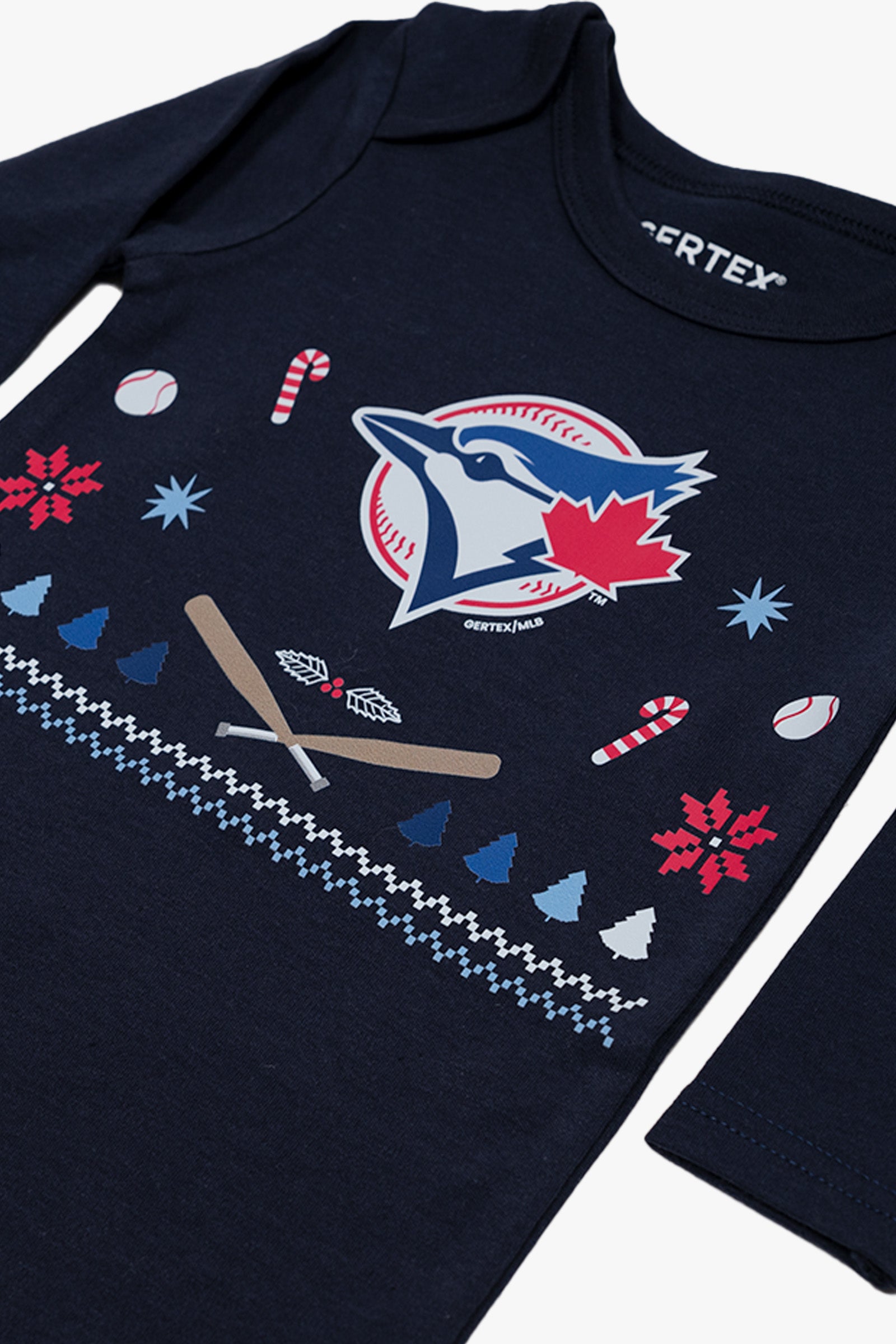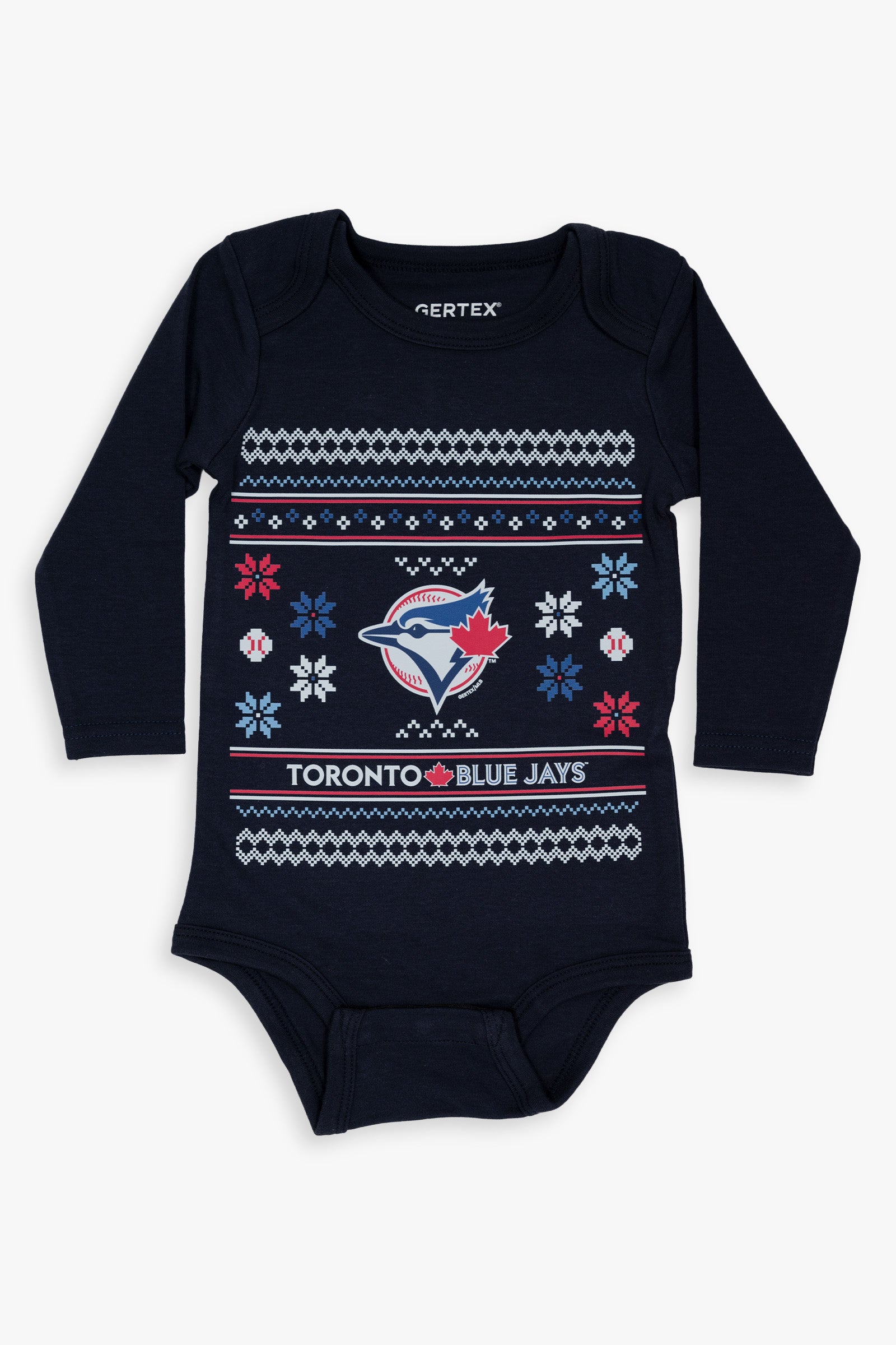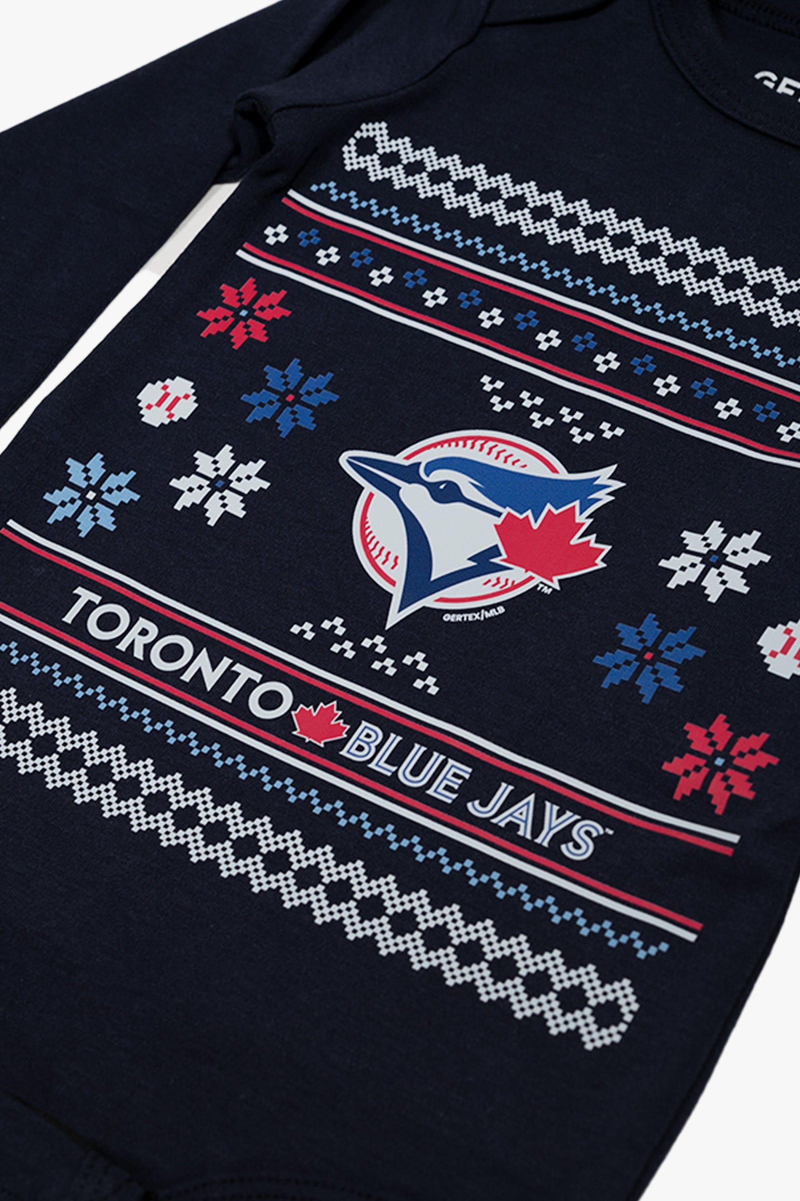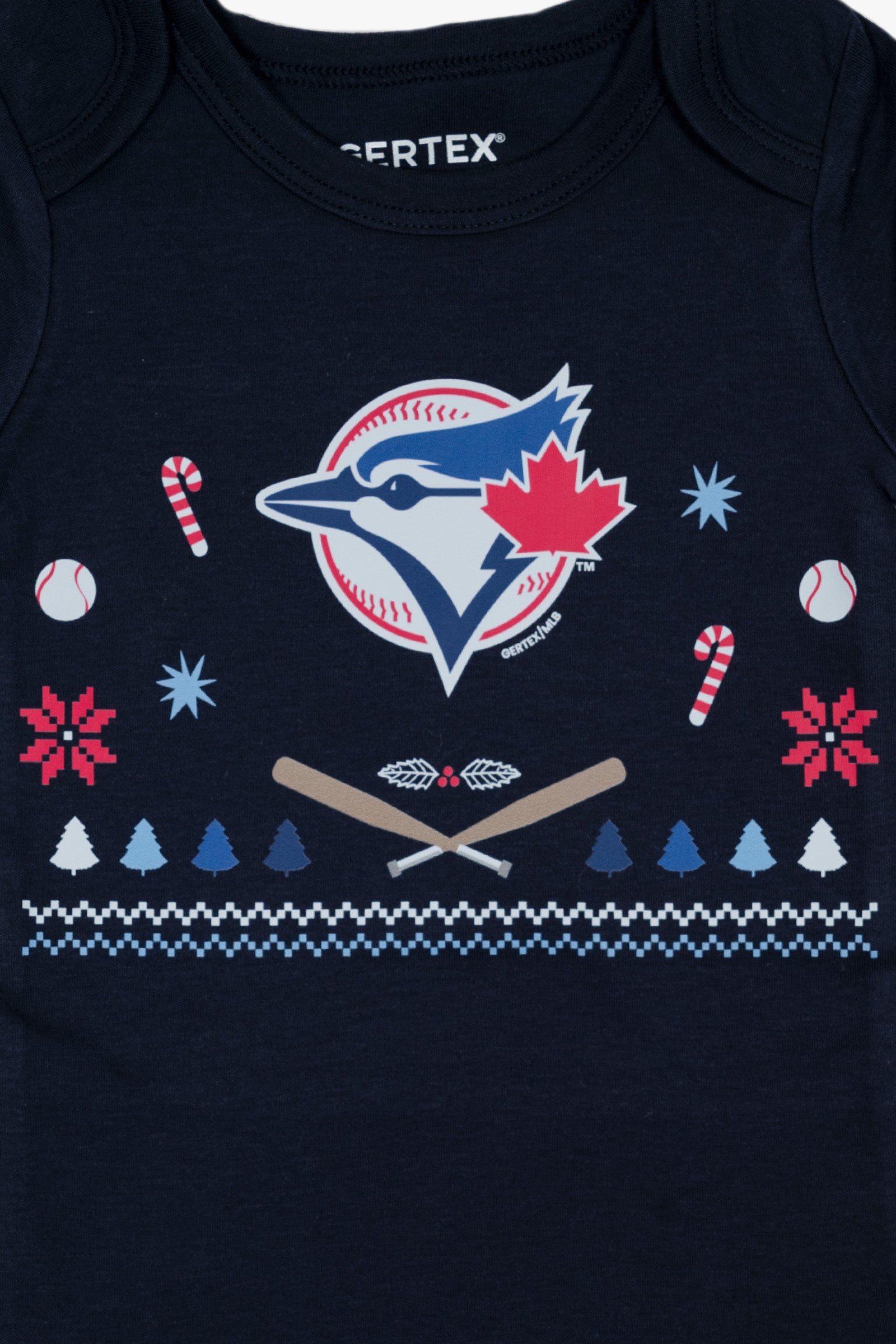 Score a holiday🎄 home run with our MLB Toronto Blue Jays Ugly Holiday 100% Organic Long Sleeve Baby Bodysuit! 🎁 Swing for the fences with two fun-tastic holiday styles that are sure to crack up your little slugger. 🎅