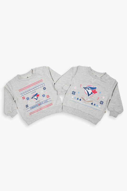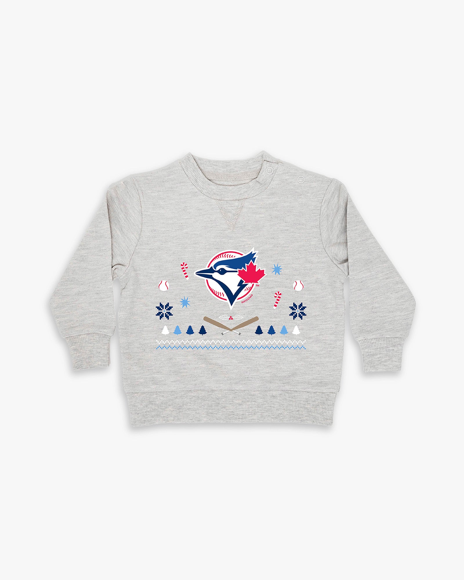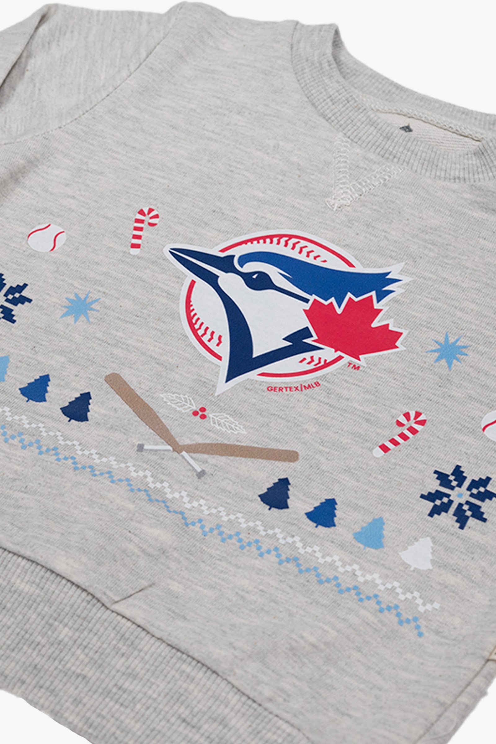 Got a little one who loves the 💙Jays?💙Keep 'em warm and 🧣snuggly🧣 in an official Gertex MLB Toronto Blue Jays sweater! Made with super-soft French Terry Cotton, it's 💯% perfect for rooting on the home team from the sofa (or the icy stands). 🤩Go Jays!🤩