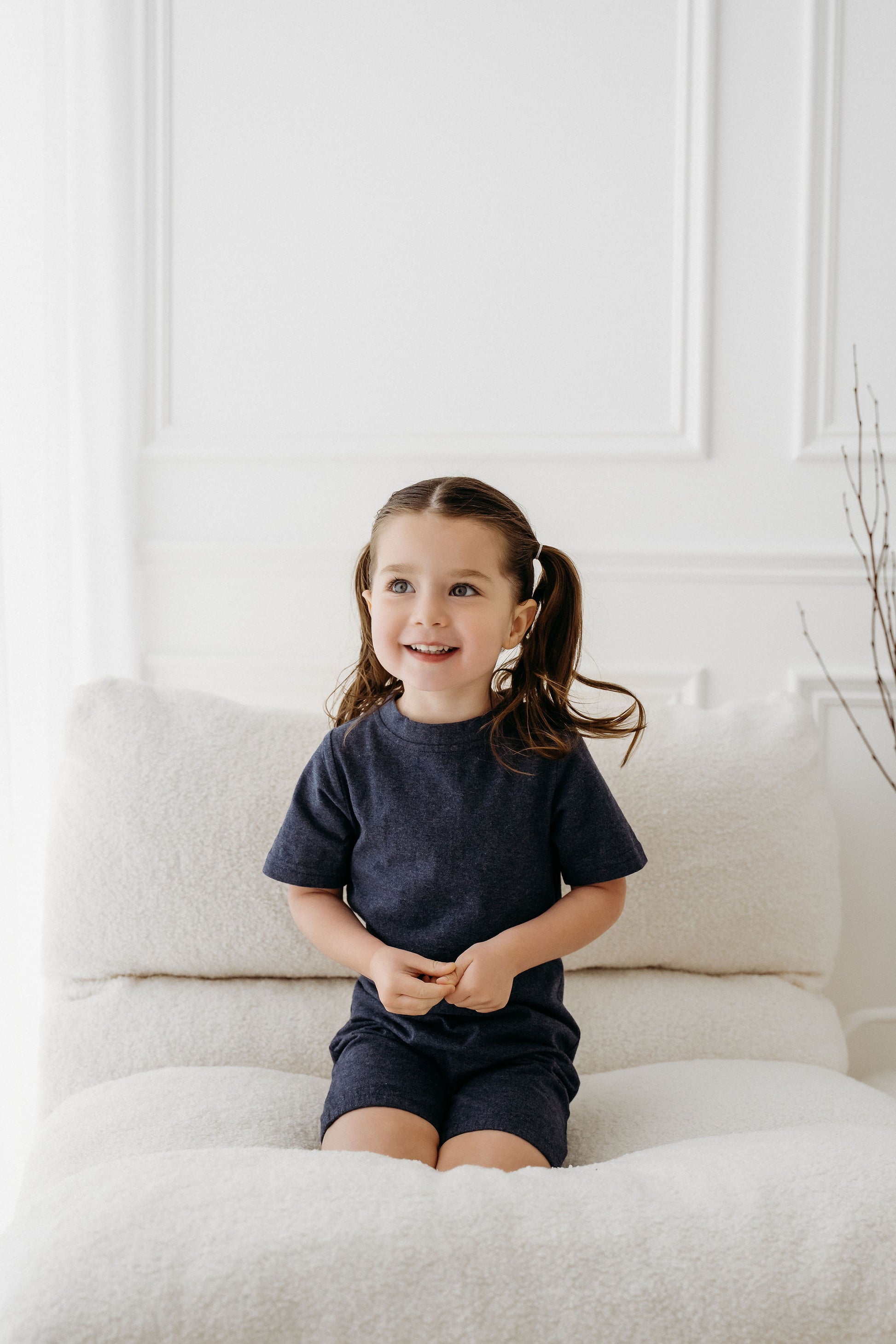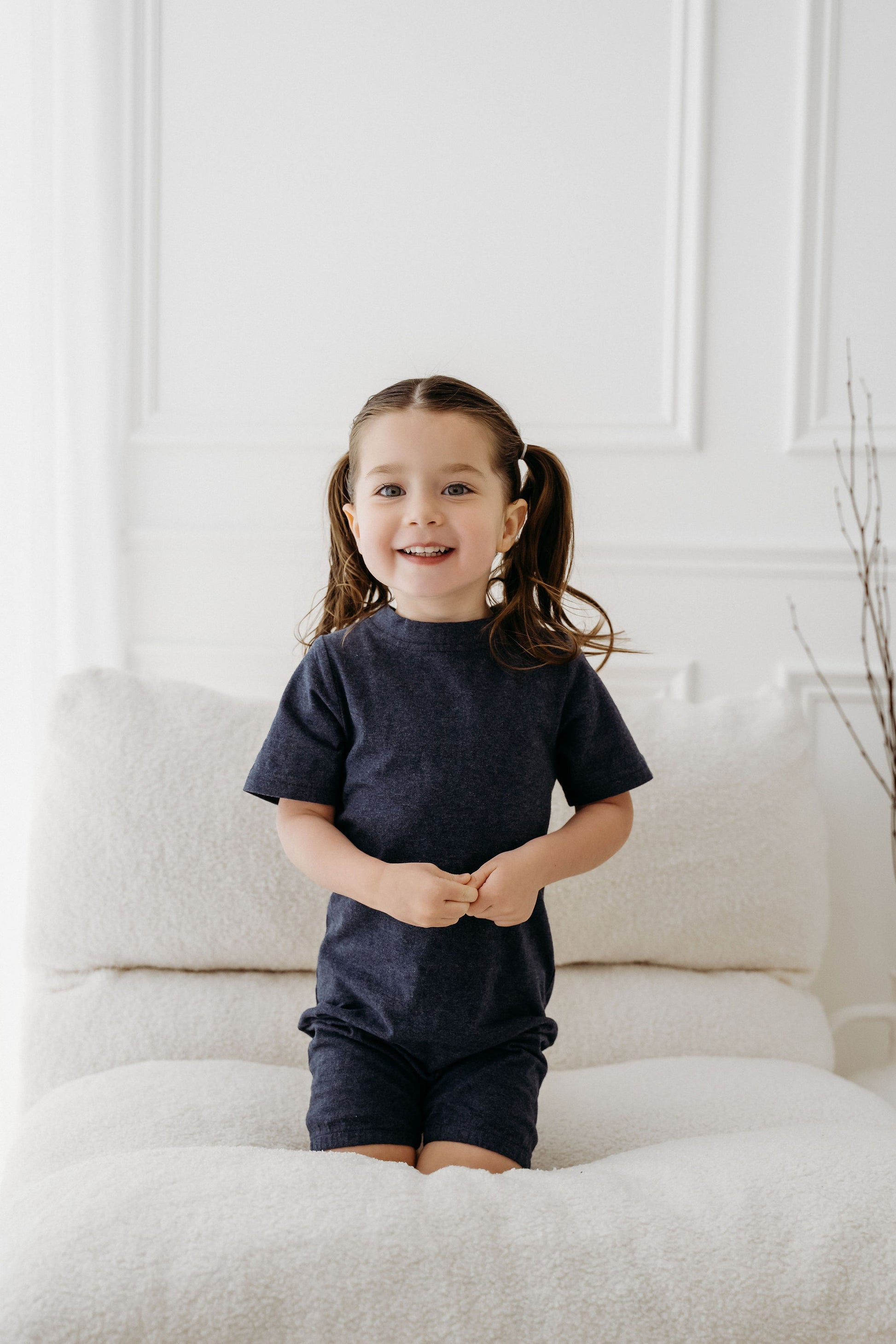 Kids Navy Lightweight Organic Cotton Adaptive, Anti-Strip, Back-Zip Romper