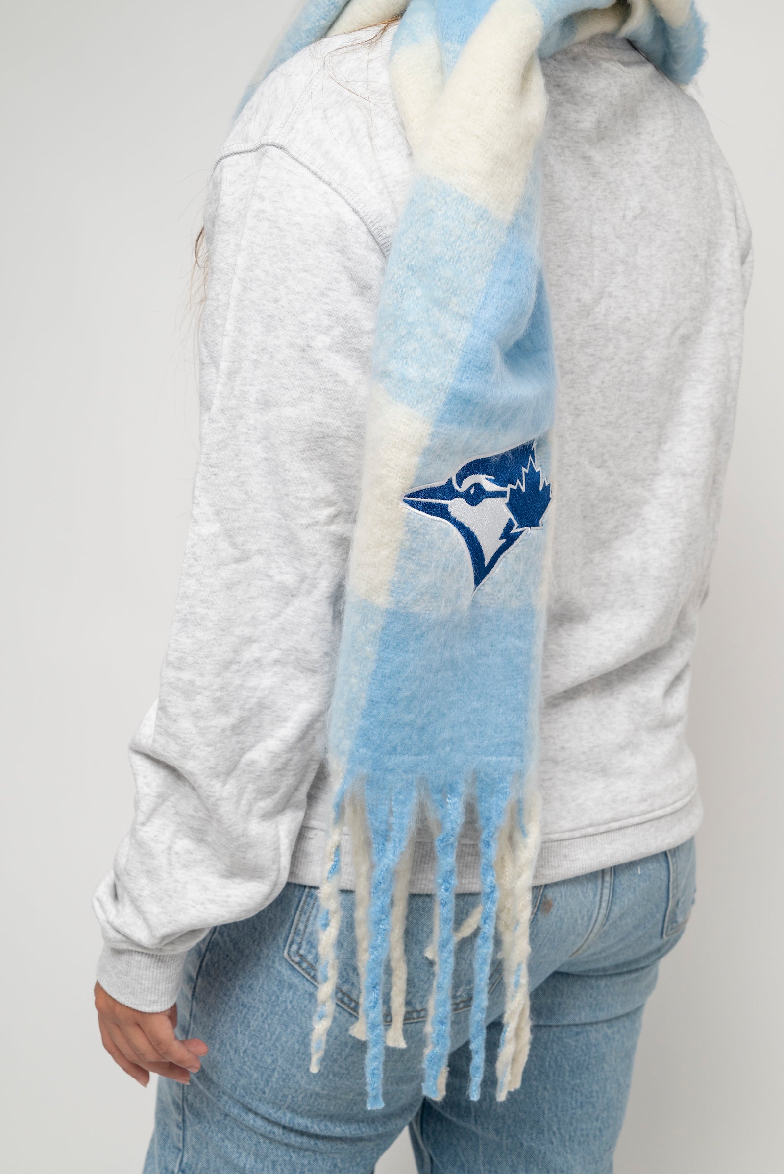 Show your support for the Blue Jays and stay warm all season long with the MLB Toronto Blue Jays Women's Oversized Blanket Scarf! Delight in the powder blue hue and ultra-soft fabric - perfect for staying warm and cozy in style. Represent the Blue Jays and stay chic - even on the chilliest of days!