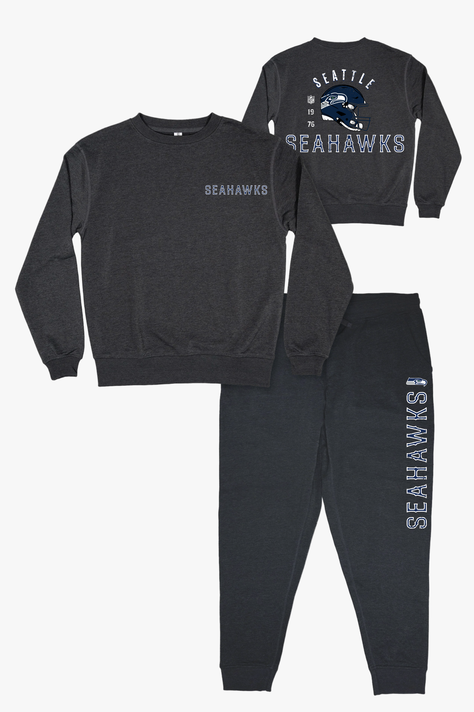 NFL Seattle Seahawks Unisex Adult Adult Dark Grey French Terry Lounge Set With Vintage Helmet Design