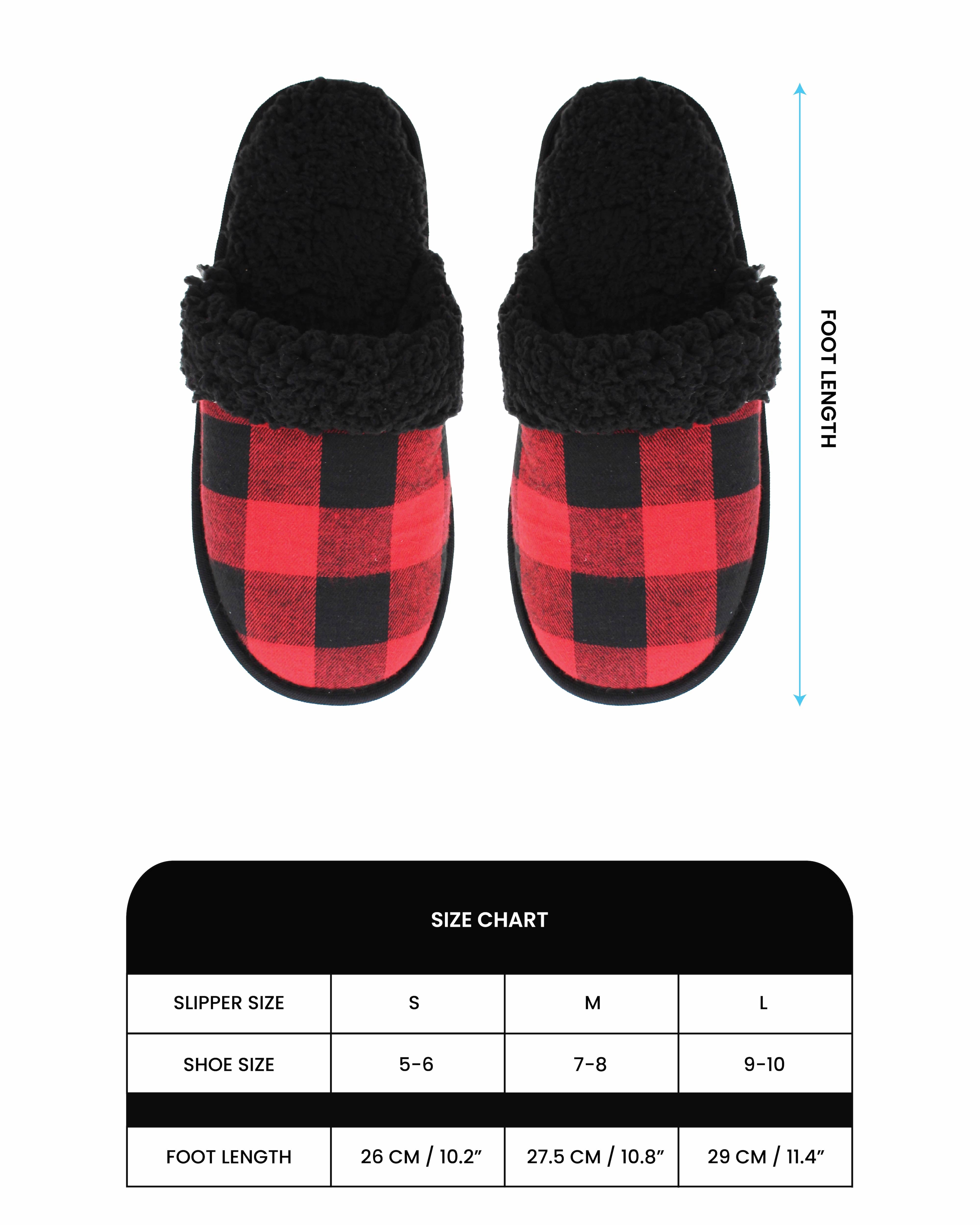 - Crafted with a classic red and black buffalo plaid design, these slippers boast team spirit with every step. The open back style ensures easy slip-on and off, while the cozy sherpa lining provides warmth and comfort during those chilly game nights.