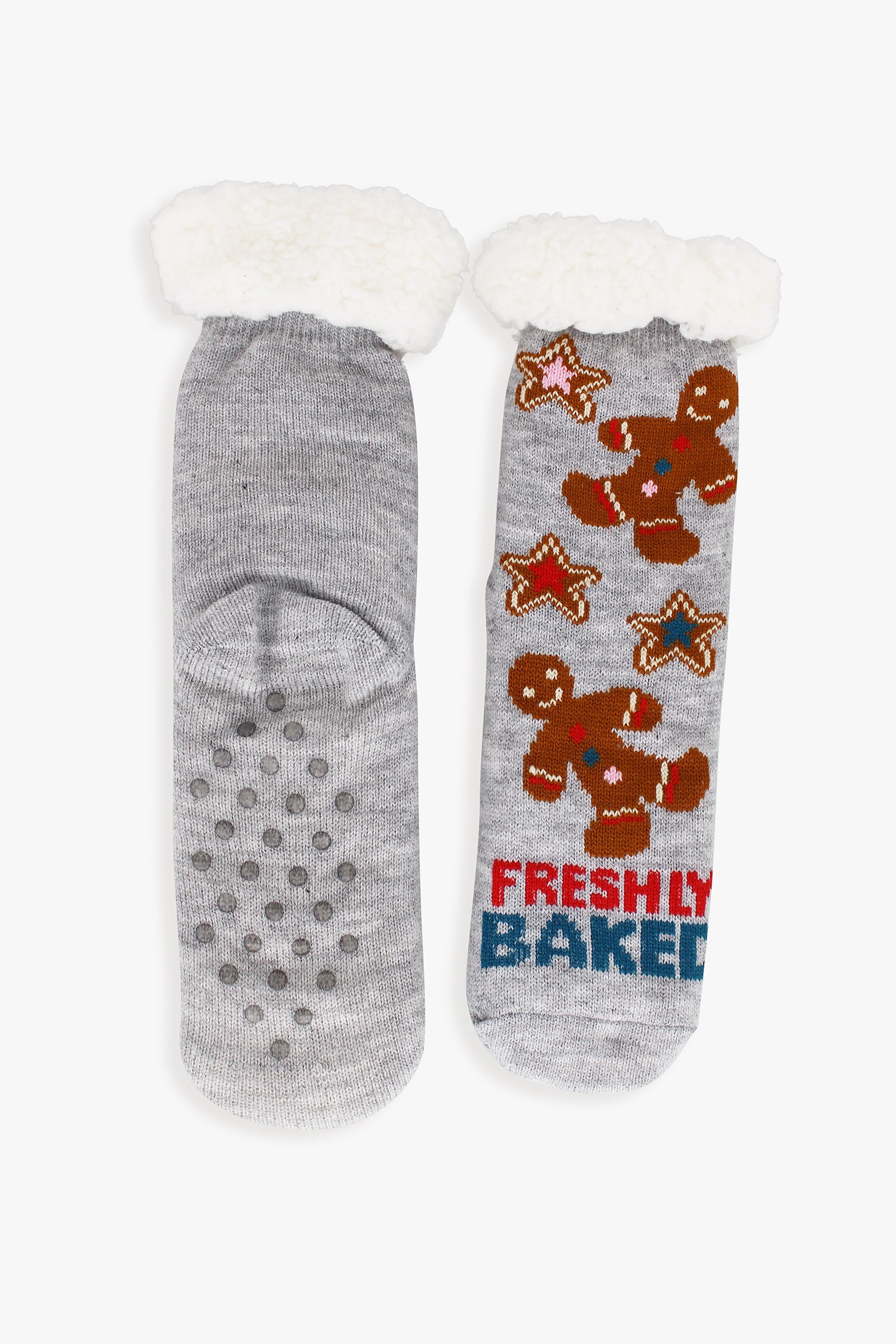 Holiday Adult Faux Shearling Lined Non-Skid Slipper Socks