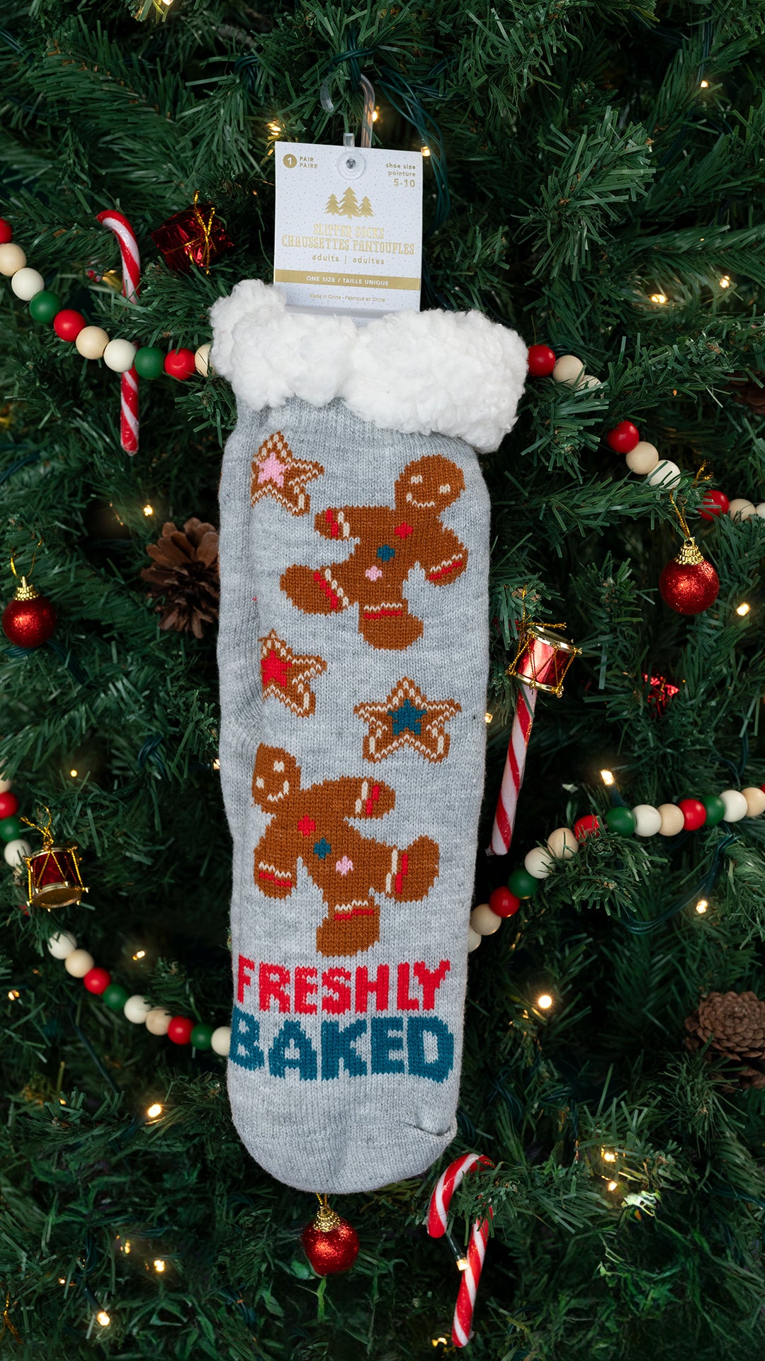 These cozy shearling slipper socks keep your feet feeling merry and bright all season long! Crafted with a comfortable faux shearling lining and non-skid bottoms, these festive socks are the perfect way to add a touch of holiday cheer to your home. ☃️😃