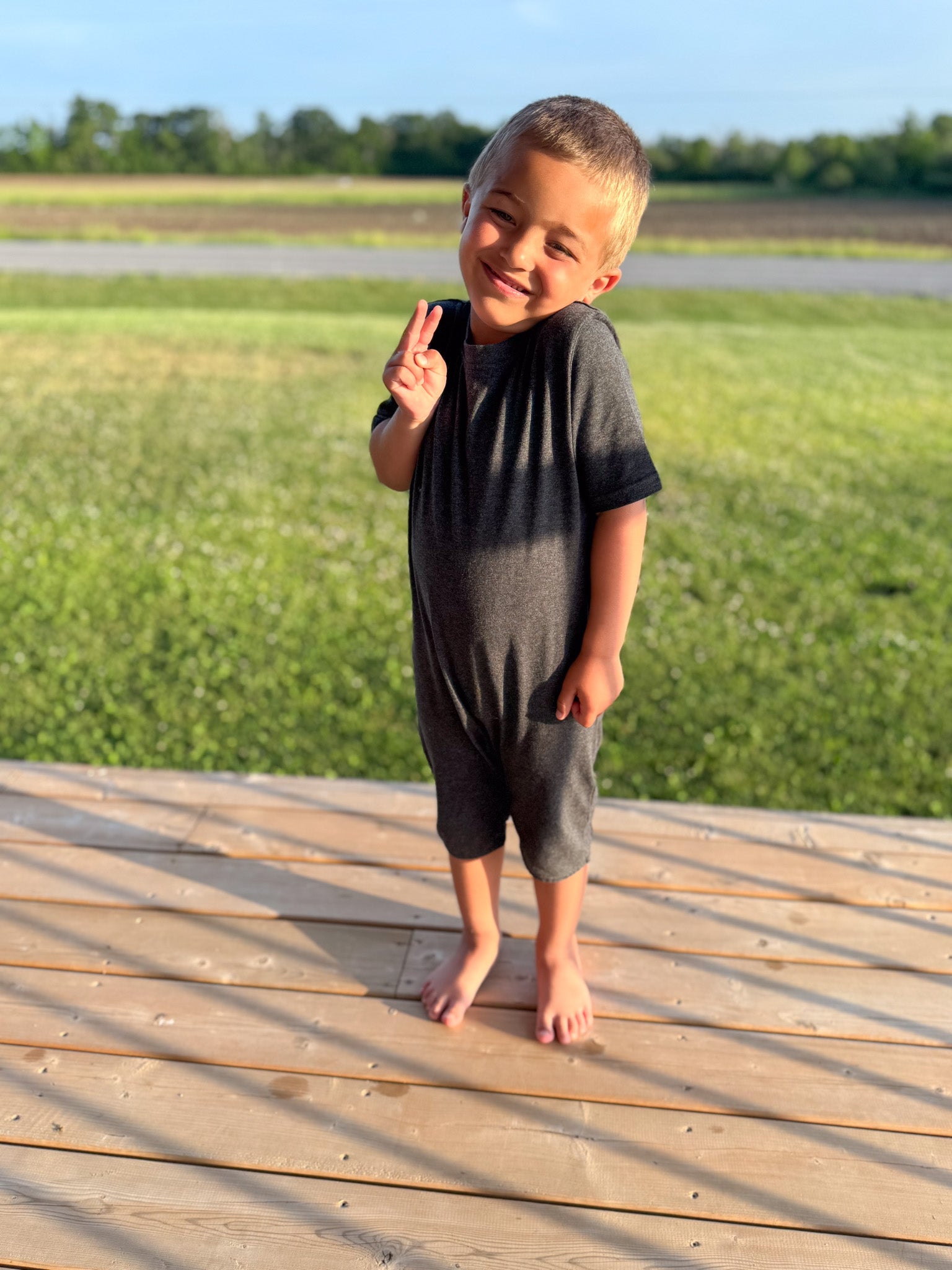 Kids Charcoal Grey Lightweight Organic Cotton Adaptive, Anti-Strip, Back-Zip Romper